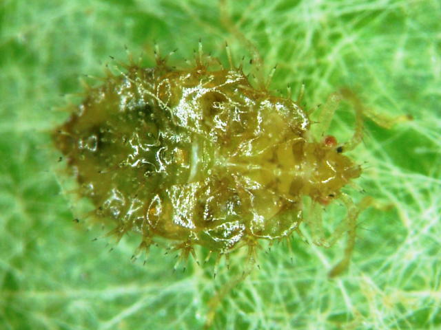 アワダチソウグンバイ5齢幼虫(体長1.6mm)