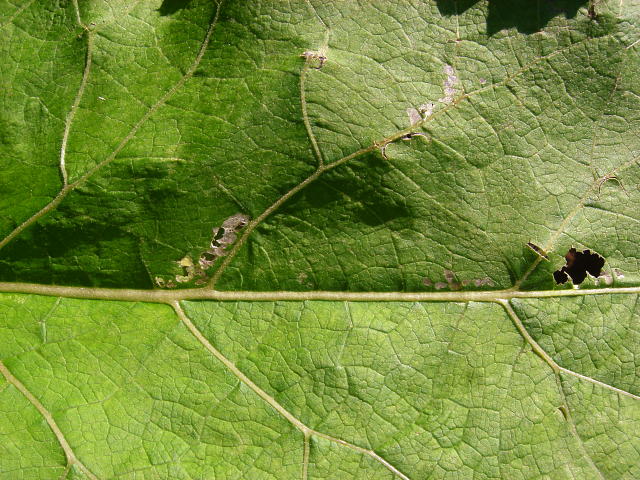 ゴボウハマキモドキ 幼虫による食害葉表