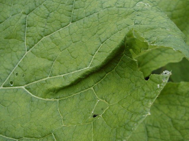 ヒラタマルハキバガ類幼虫は葉を寄せてしわを作って巣にする