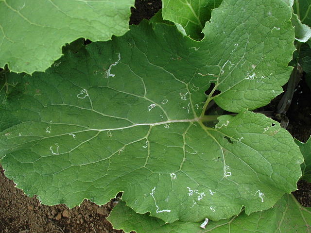 マメハモグリバエ 幼虫による被害葉