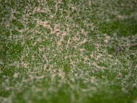 | 発生時期:7月〜9月 病原:糸状菌(かび) 伝染方法:ほ場に残った発病葉上の病原菌が伝染源となる。 被害・葉にうどん粉上の病斑を生じる。 参考:やや乾燥した条件で発生しやすい。 |
