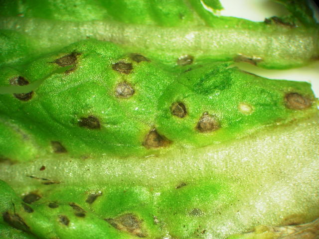 えそモザイク病 葉の楕円形えそ