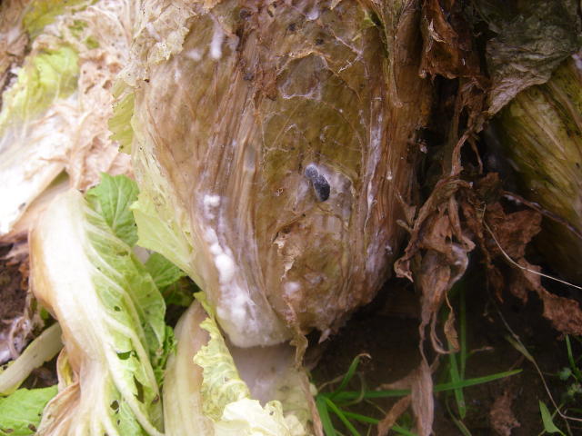 菌核病 菌糸とネズミ糞状の菌核
