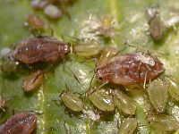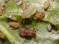 | 発生時期:10月〜3月 被害:幼虫及び成虫の葉からの吸汁による生育抑制、葉への寄生による品質低下、ウイルス病の媒介 |