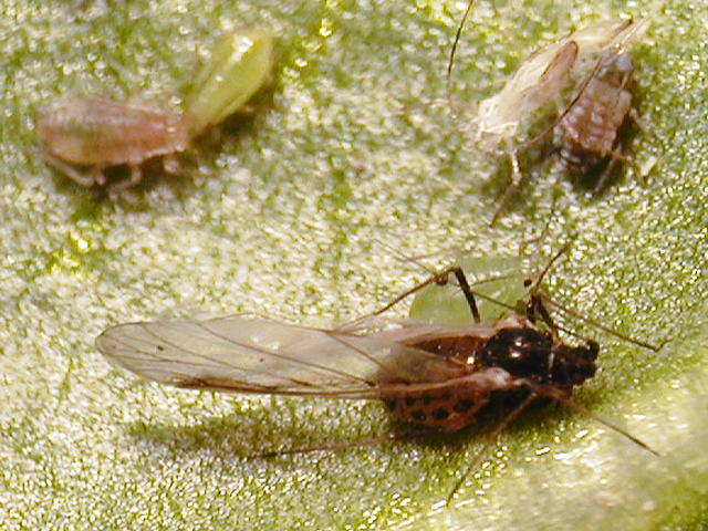 モモアカアブラムシ成虫(有翅、体長2.5mm)