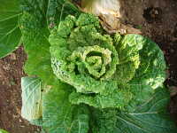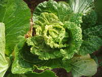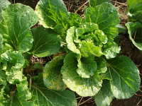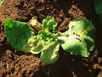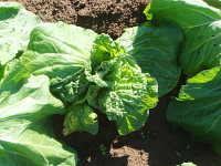 被害:葉に濃淡モザイクや縮れを生じる。初期感染すると、株が萎縮し結球しない。