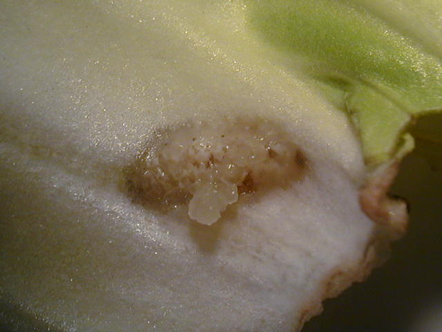 ヤサイゾウムシ ハクサイ内を食害する幼虫
