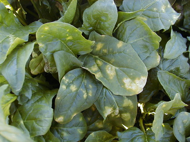 べと病 葉表は、黄色く不正形で周縁が不明瞭な病斑