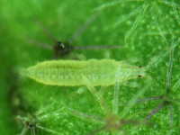 被害:成虫及び幼虫の加害による葉の奇形、生育抑制