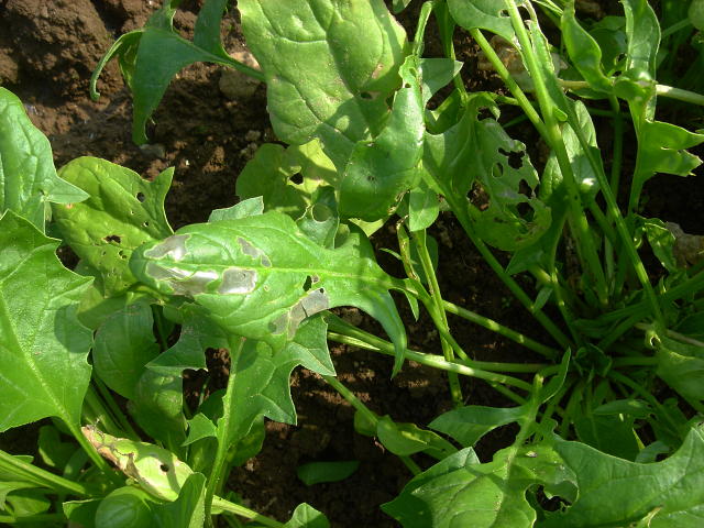 シロオビノメイガ 幼虫による被害葉(表皮を残して食害)