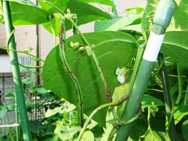 マメアブラムシが寄生した莢