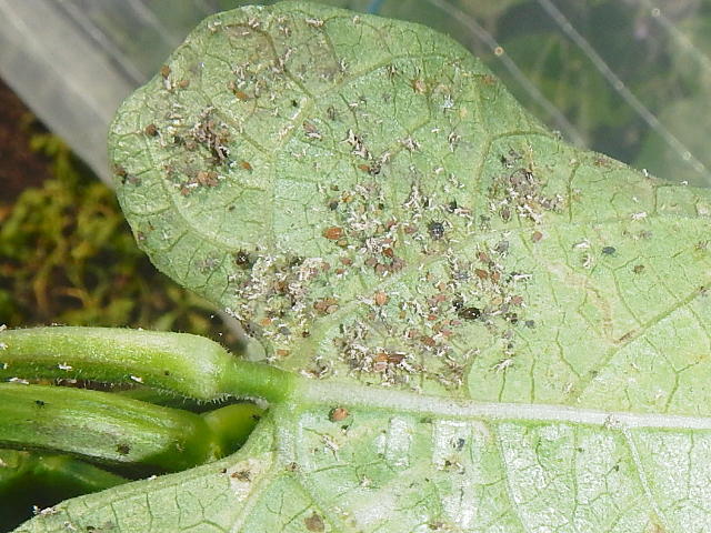 萎縮株葉裏のマメアブラムシ