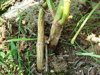 地際部の褐色菌核と白色菌糸