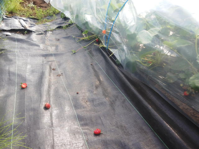 ハシボソガラス 被害果を飛ばす