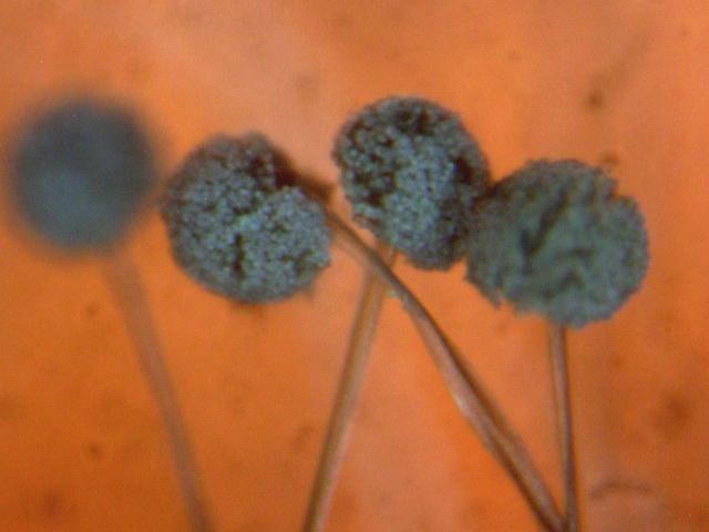 軟腐病 黒い胞子のうの表面が崩れて胞子が出る