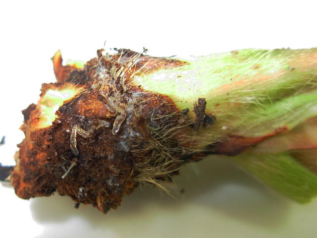 チビクロバネキノコバエ 株元に幼虫が多発生