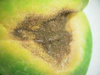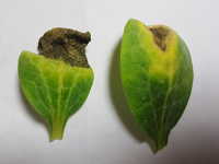 被害:双葉が褐変し、本葉は白化する。