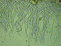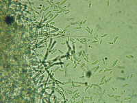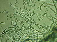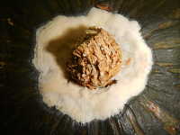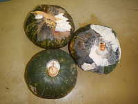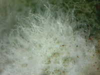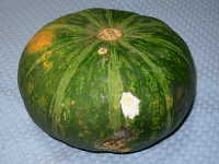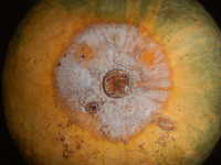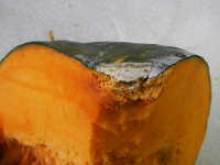 | 発生時期::8月下旬〜9月 病原;糸状菌(かび) 伝染方法:果実に付着した土壌中の病原菌が、貯蔵開始から40日以上経過し、果実が軟化進むにつれて感染する。 被害:果実に白いカビを生じ、内部が腐敗する。 |