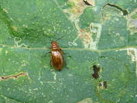 被害:成虫による葉及び果実の食害。幼虫による根の食害