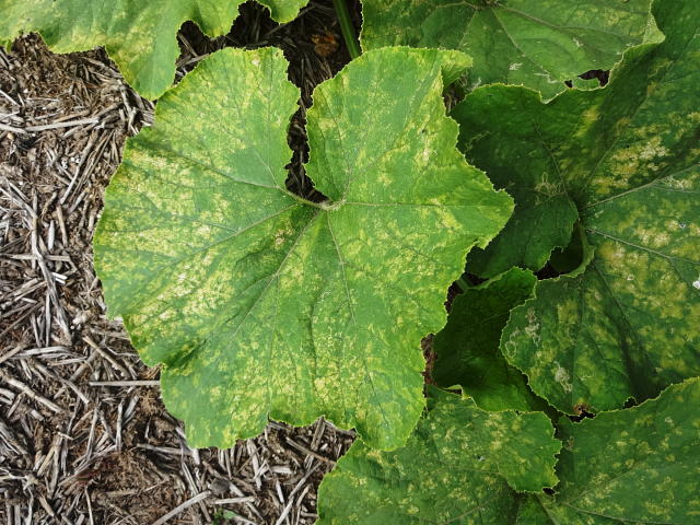 ワタアブラムシ 寄生により葉が変色(8月中旬)
