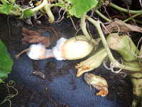 被害:地面に接した果実が白い菌糸に覆われる。