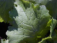 成虫による葉の食害痕(丸い穴)