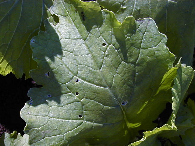 キスジノミハムシ 成虫による葉の食害痕(丸い穴)