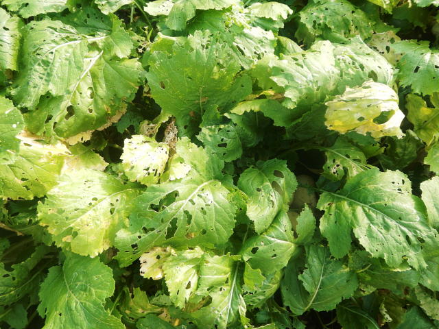 コナガ老齢幼虫による食害葉