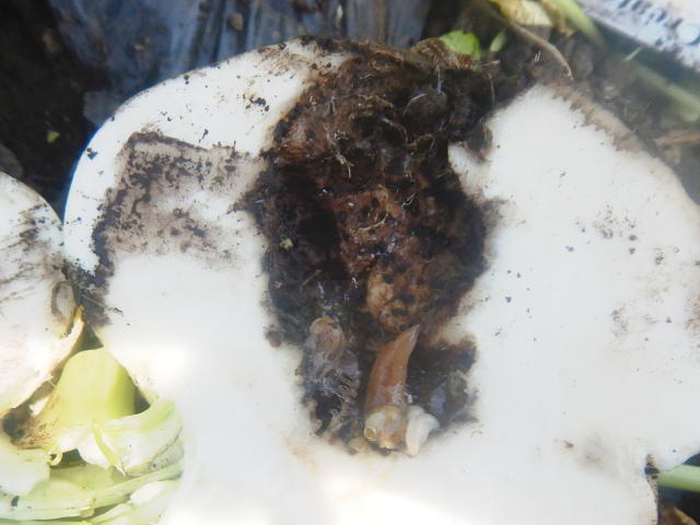 カブ内に潜むナメクジ(右側)