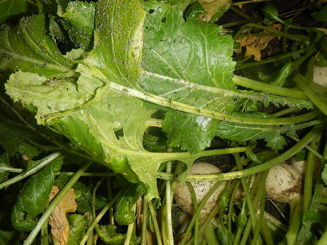 ニセダイコンアブラムシの多発生で葉がベトベトする