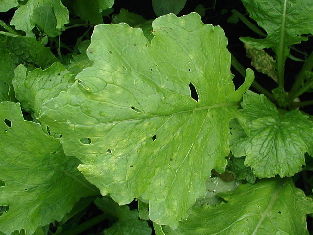 白さび病 発病葉(葉表、不鮮明な黄色病斑)
