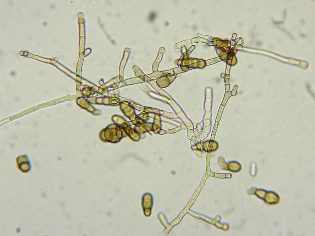 アルタナリア属菌による花蕾黒変 分生子と菌糸