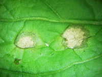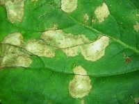 被害:葉に白色の円形病斑を生じる。