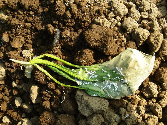 カブラヤガ 幼虫が地際部を食害