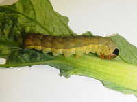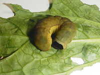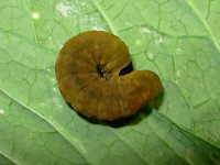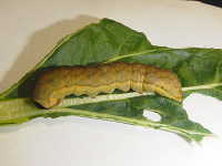 老齢幼虫が葉の間に潜む