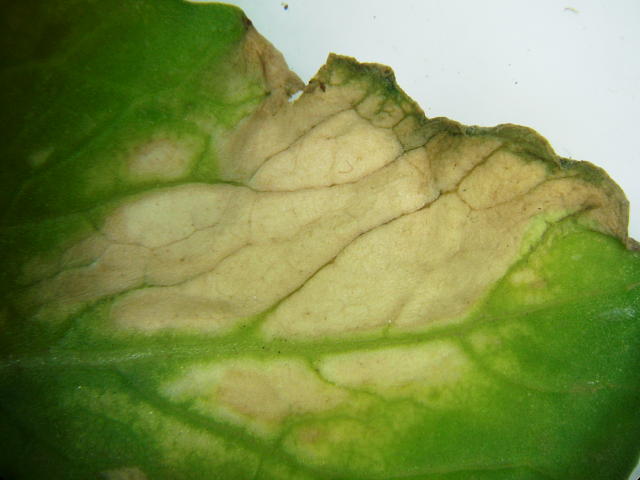高温による葉枯れ 白褐変部