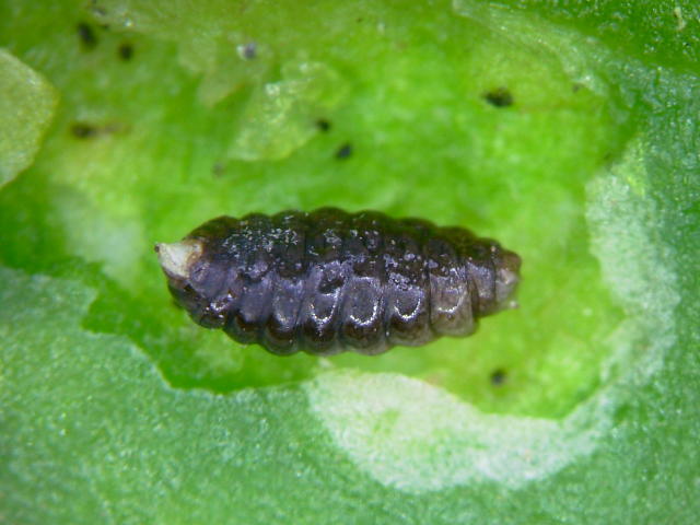 ナモグリバエ蛹(羽化が近づくと黒くなる)