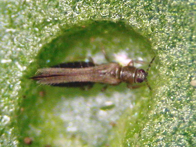 ネギアザミウマ成虫(体長1mm)