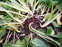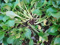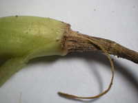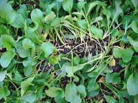 | 発生時期:周年(施設内) 病原:糸状菌(かび) 伝染方法:土壌中に残った発病株上の病原菌が伝染源となる。 被害:株の地際部がくびれて細くなり、萎れる。 |