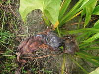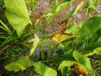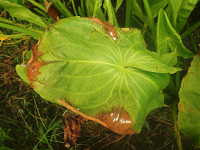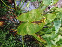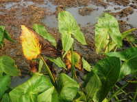 被害:発病茎葉は黄色く変色し、褐変部が広がり、次第に枯死する。このため塊茎の肥大が悪くなる。