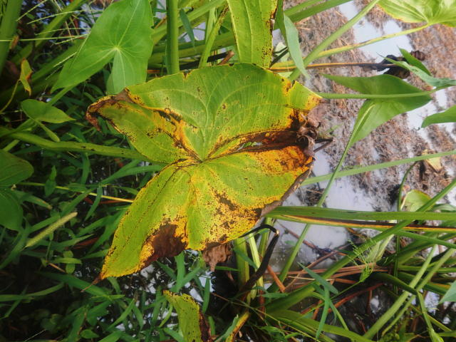 赤枯病 葉の褐変部が広がる