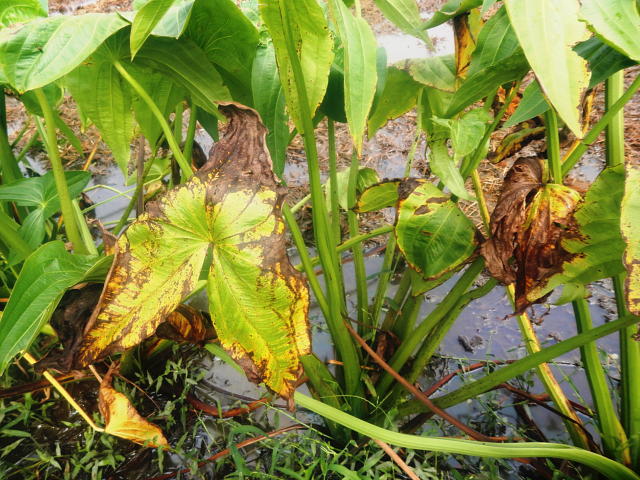 赤枯病 葉の褐変部が更に広がる