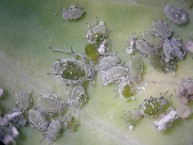 ダイコンアブラムシ 体をロウ質の白色粉で覆う