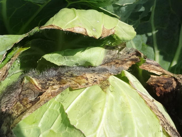 こうがいけかび病 葉縁が褐変しケカビが生える