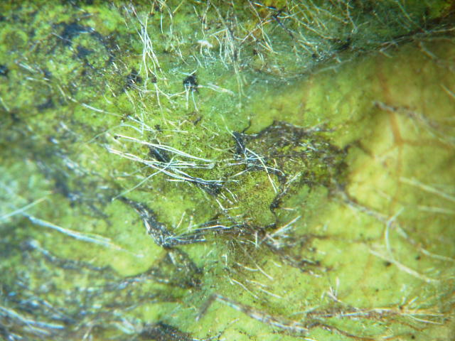 こうがいけかび病 白い菌糸と黒い胞子