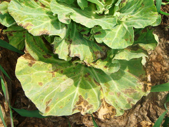 黒斑病 黒褐色の円形病斑を生じる