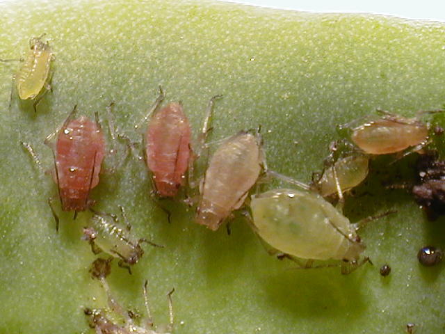 モモアカアブラムシ成虫(体長2mm)及び幼虫