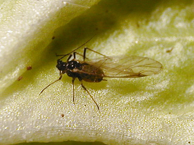 モモアカアブラムシ成虫(有翅、体長2.5mm)