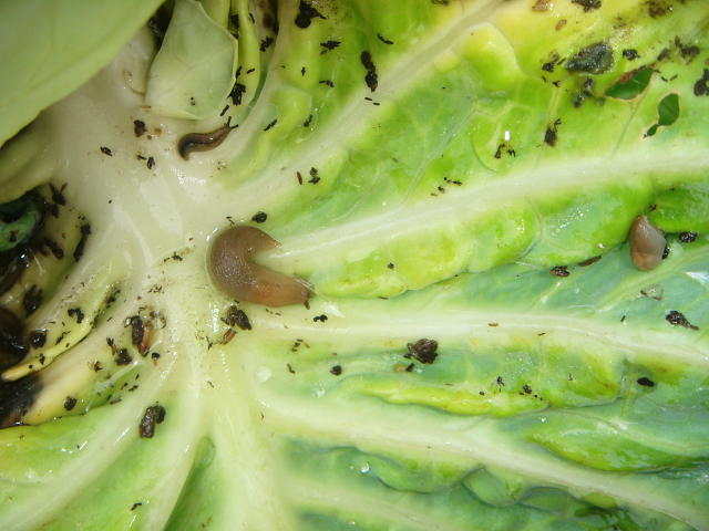 ナメクジ類 黒い糞で汚れる