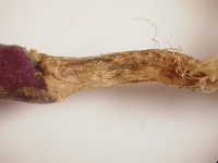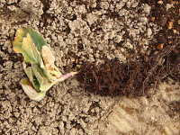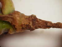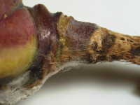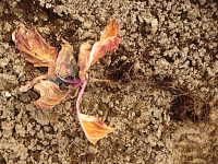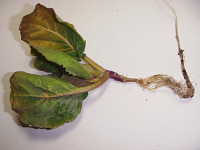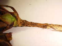 被害:地際部がくびれて細くなり、萎れる。根は健全である。